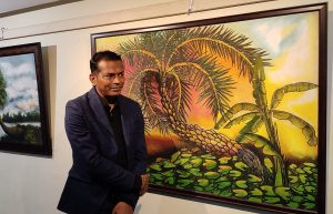“তালগাছের ভাবনা কিভাবে যেন বারবার ফিরে ফিরে আসছে আমার ছবিতে। গ্রামবাংলার সব ল্যান্ডস্কেপে নানা চেহারার তালগাছ আমি আঁকি। তালগাছকে আমি দেখতে পাই সব প্রকৃতির ল্যান্ডস্কেপে”, বললেন শিল্পী তাঁরই আঁকা একটি তালগাছের দিকে অপলক চেয়ে থেকে।