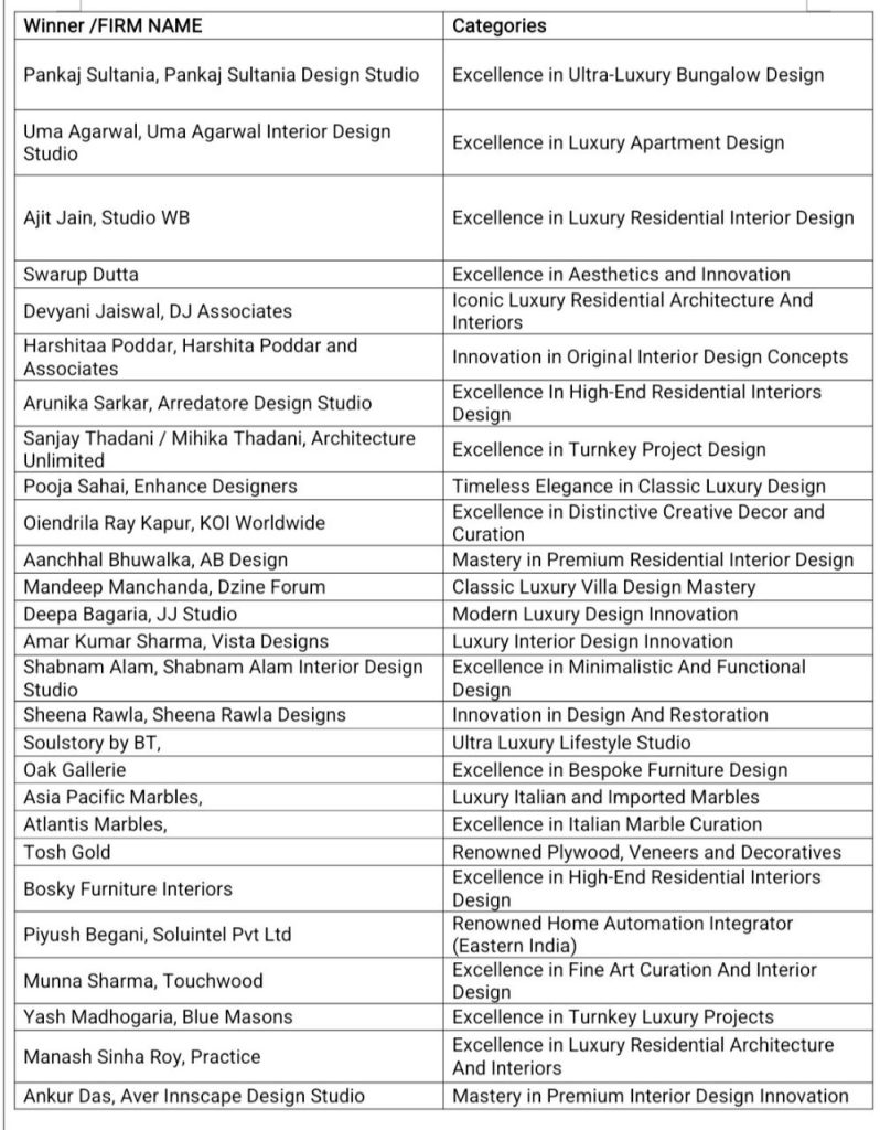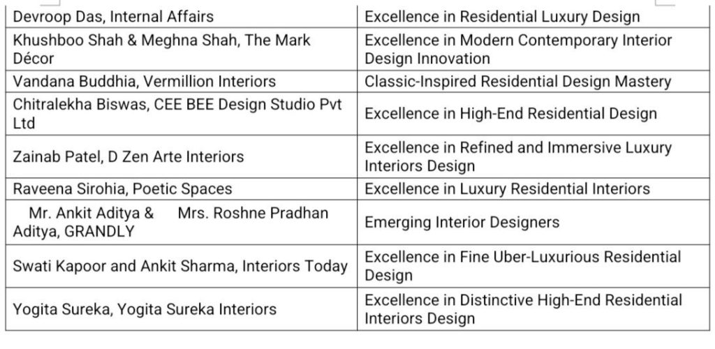 The event brought together a distinguished lineup of attendees, including Kiran Shetty, Abin Choudhari, Pooja Bihani, Sonali Bhagwati, Ajay Arya, Pulin Shah, Ammaor Sanganeria, and Amit Porwal, along with leading architects, designers, and cultural icons, all gathered to celebrate today’s design visionaries.