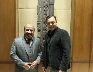 এডভেন্ট এডুকেশনের কর্ণধার অভিষেক দে সরকার (বামদিকে) ও ওয়েবস্টার ইউনিভার্সিটির অ্যাসিস্টেন্ট ভাইস প্রেসিডেন্ট সম্রাট রায়চৌধুরী